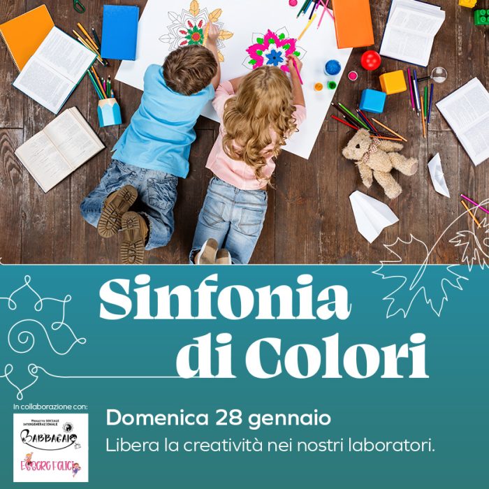 Sinfonia di Colori 28.01 L’inverno diventa una Sinfonia di Colori al Centro Conero! Domenica 28 gennaio libera la creatività nei nostri laboratori, dai vita a fantastici mandala e lasciati incantare dallo spettacolo danzante. Appuntamento in Galleria dalle 17 alle 19.